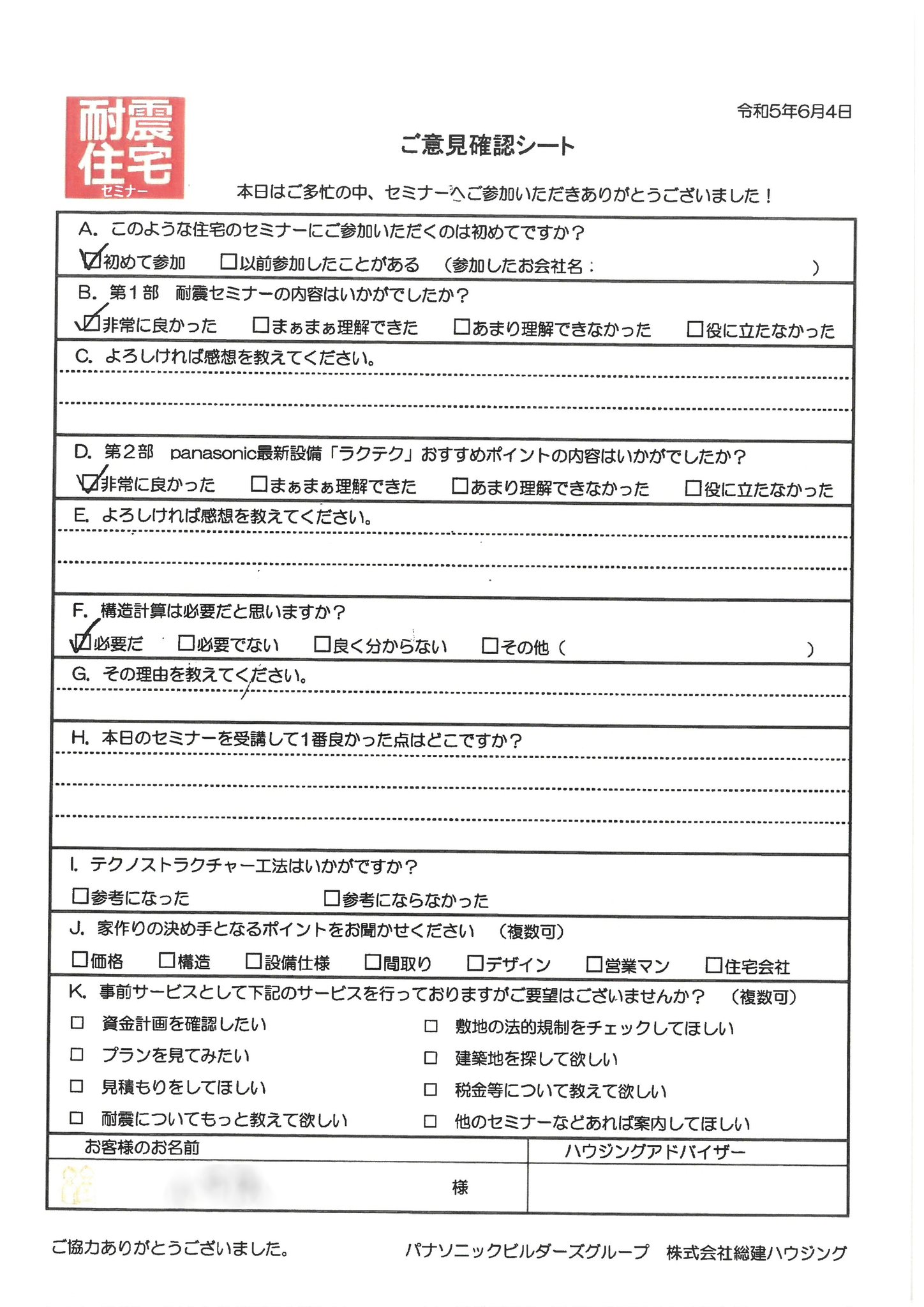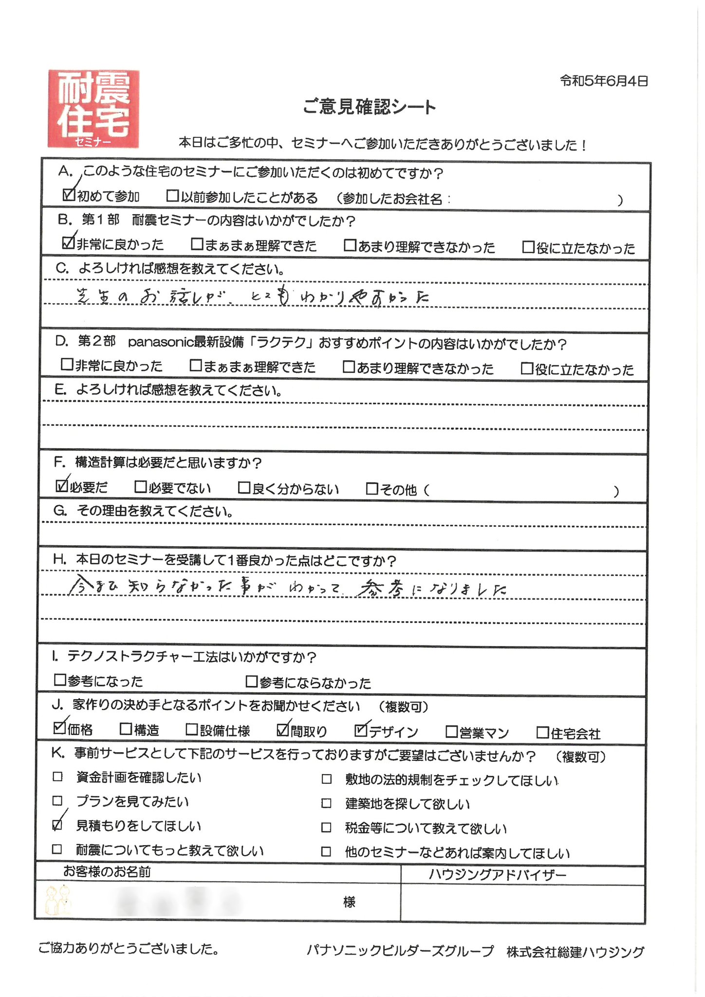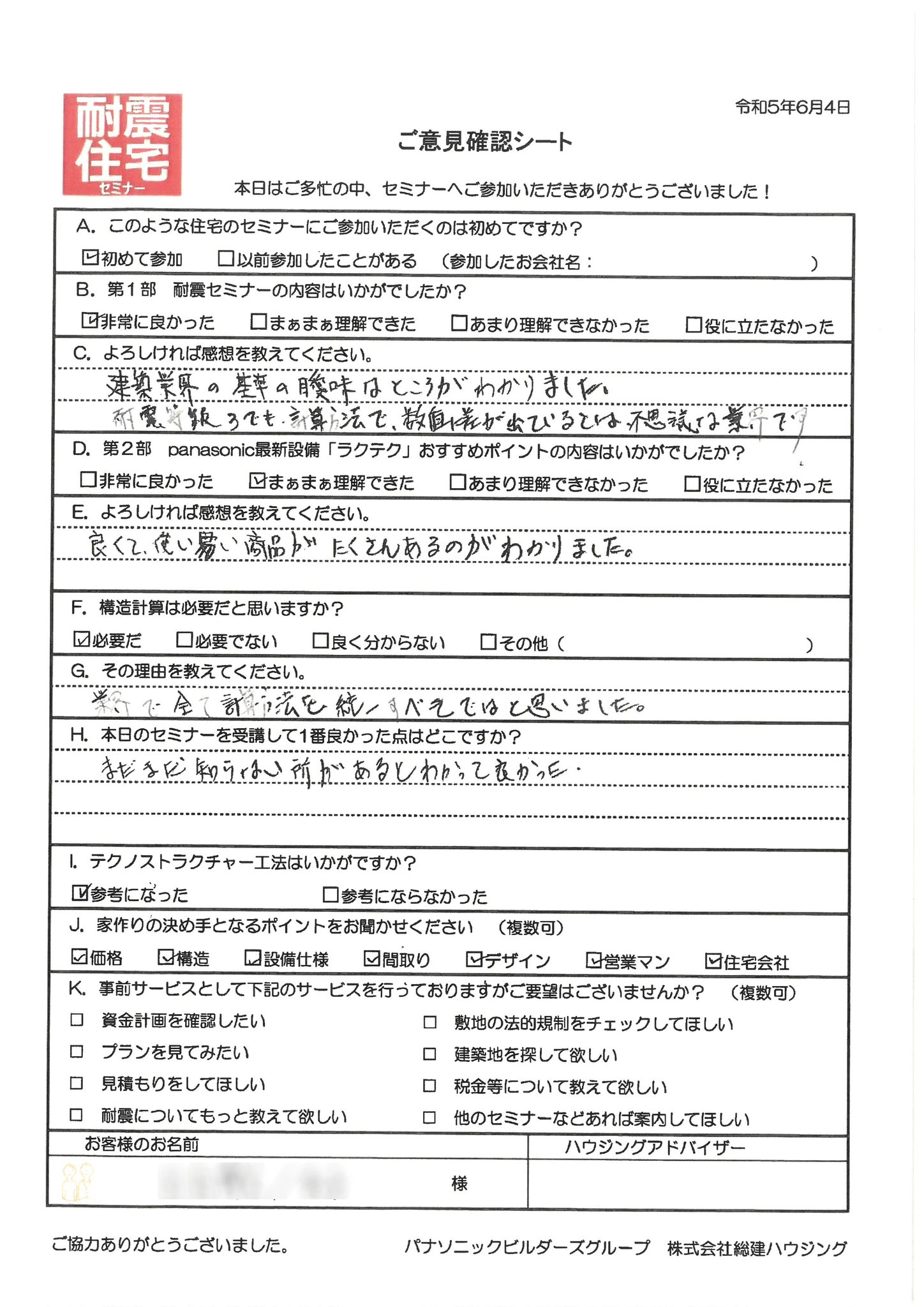 2023年6月4日、3年ぶりに開催しました「耐震セミナー」inパナソニックショウルーム