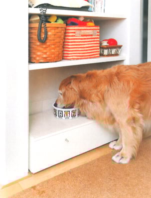 寂しがり屋の愛犬のために、トイレや食事の場所、使いたいものをスグ出し入れできる収納など...