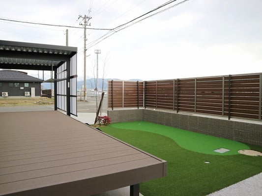 インナーガレージをご希望されていたA様。ご自身でメンテナンスをするスペースの確保と、家の中からも愛車を見ることができるようにしました。ガレージ兼趣味の部屋としてA様の秘密基地が完成しました。奥様のご要望のママコーナーや家族で楽しむ広々テラス、充実のストレージ、テラス前にはゴルフパターまで練習できる!こだわりをいっぱい詰め込みました。