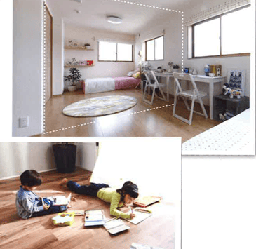子供が小さい頃は共用ルーム、大きくなったら各々の個室に。家族のライフスタイルの変化に合わせてフレキシブルに間取りを変更できます。