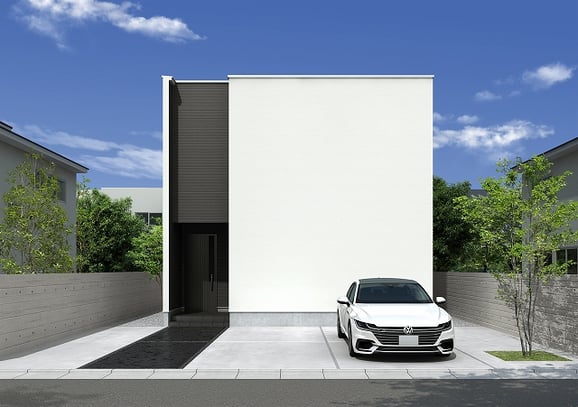 余計な要素をそぎ落としたミニマルな外観デザイン。プライバシー性が高く、自分たちの暮らしを大切にできる住まいです。
