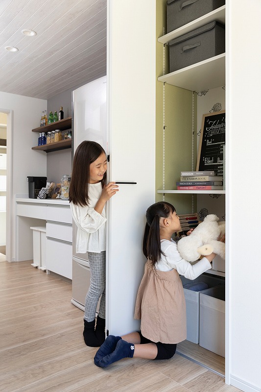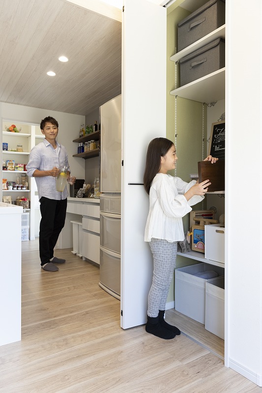 02.日常の買い置きや災害用の備蓄品をストック。キッチンをスッキリさせるパントリー