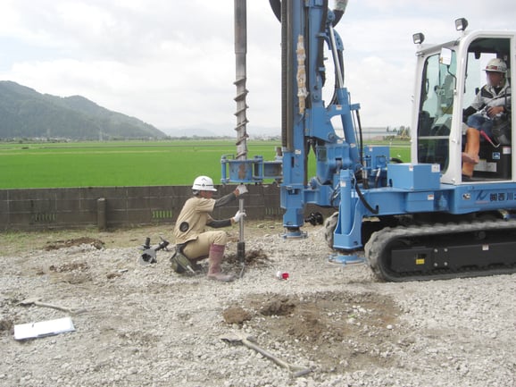 地盤調査の結果を元に地耐力不足の場合、地盤補強工事を行い、事業工事、基礎工事へと進みます。