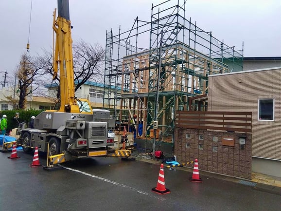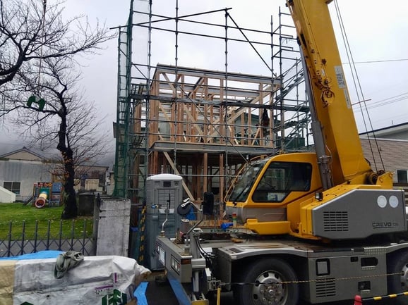 12月12日 小雨が降る敦賀市にて、Y様邸建て方が行われました。