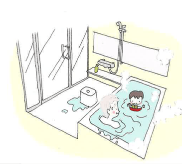共用の浴室は、親世帯と孫との楽しいふれあいの場になります。