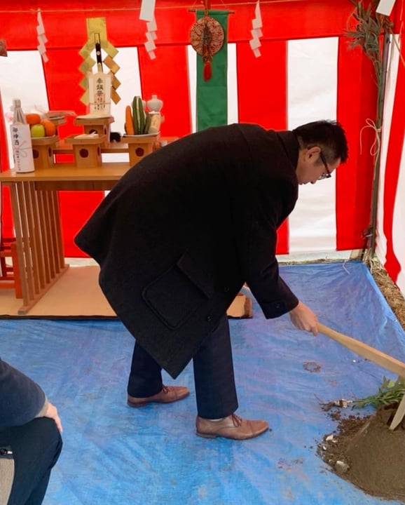 トンカン♪ トンカン♪ と作業音がする賑やかな中での地鎮祭。